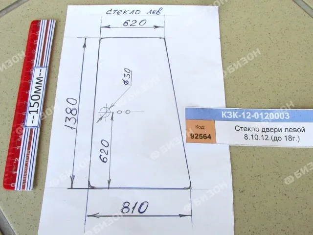 Стекло двери левой ( с отверст.) (до 18г) УПЗ0114000-04 (КЗС-8.10.12) "Гомсельмаш"