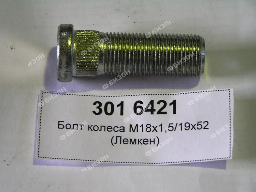 Болт ступицы колеса М18х1,5/19х52 опорного (Смарагд, Торит, Гигант, плуги Лемкен)