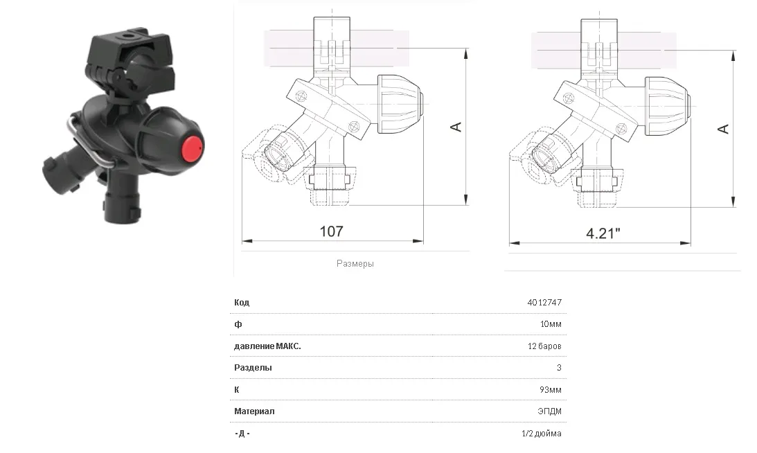 Устройство отсечное 3-х позиционное (хомут) 1/2", D=10 (Опрыскиватели, Лемкен)