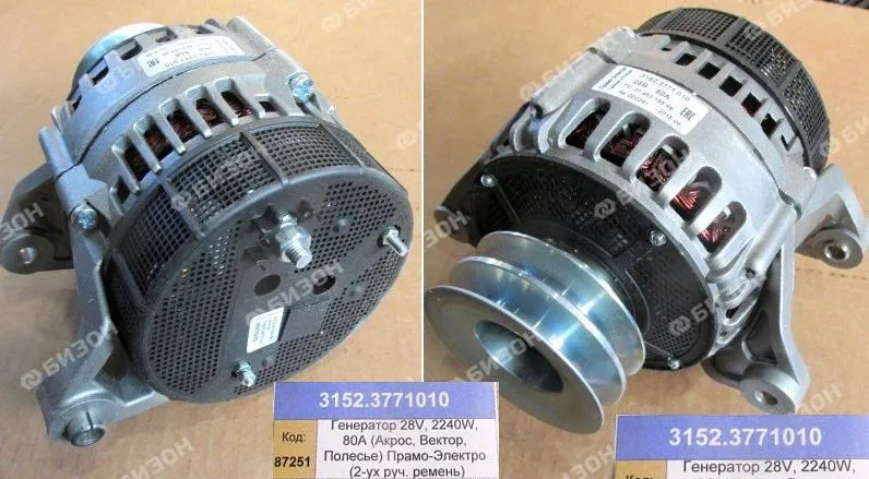 Генератор 28V, 2240W, 80A (Акрос, Вектор, Палессе) Прамо-Электро (2-ух руч. ремень)