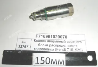 Клапан аварийный верхнего блока распределителя гидравлики (Fendt 716, 930)
