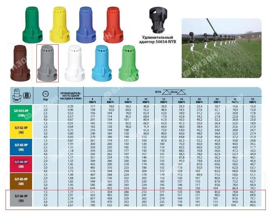 Распылитель жидких удобрений/КАС SJ7-06 VP 7-струйный полимер (серый) (TeeJet)