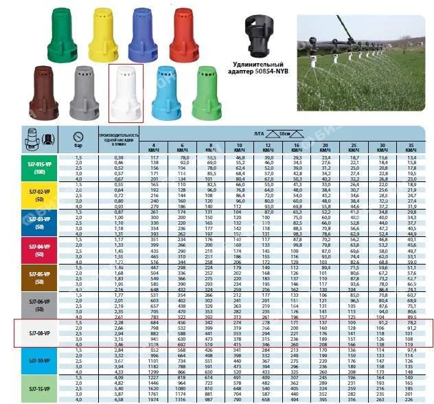Распылитель жидких удобрений/КАС SJ7-08 VP 7-струйный полимер (белый) (TeeJet)