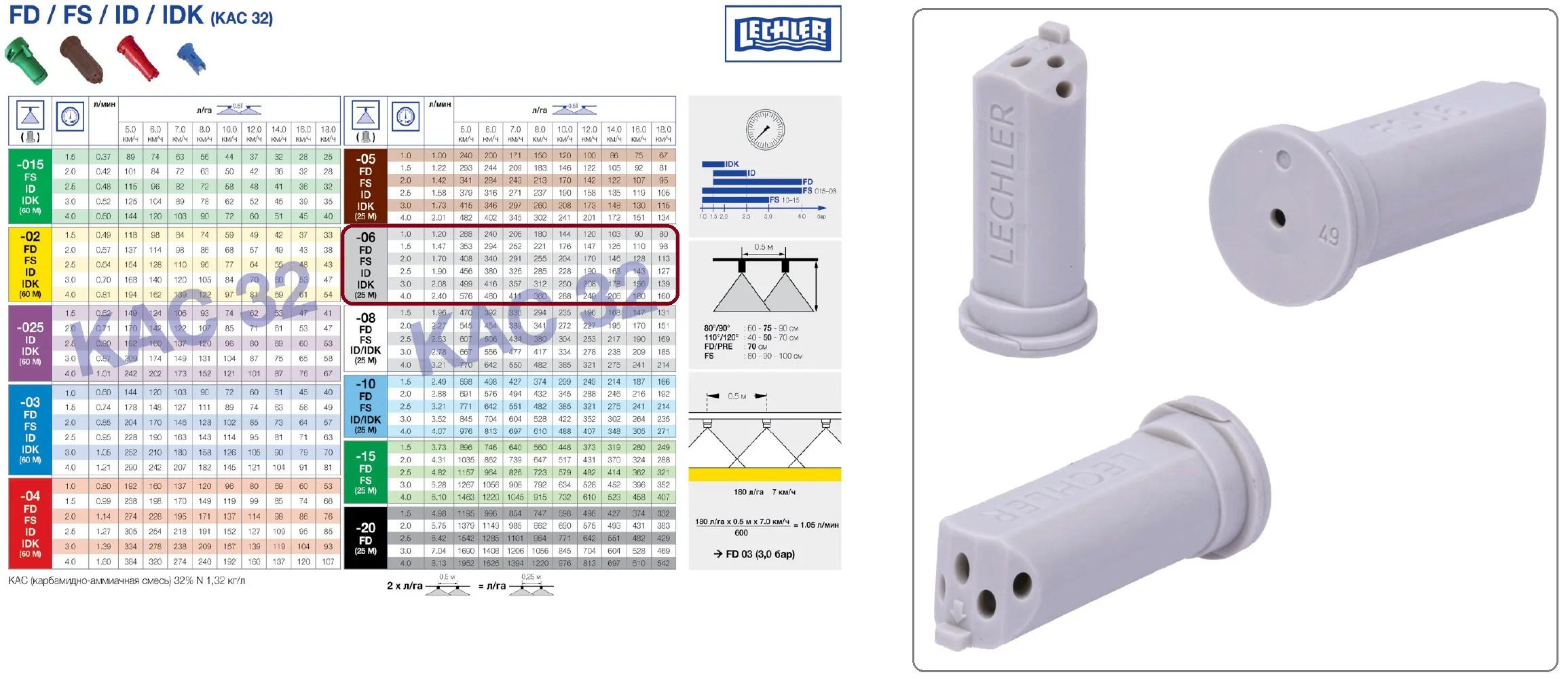 Распылитель жидких удобрений/КАС FS-06 5-ти струйный полимер (серый) (Lechler)