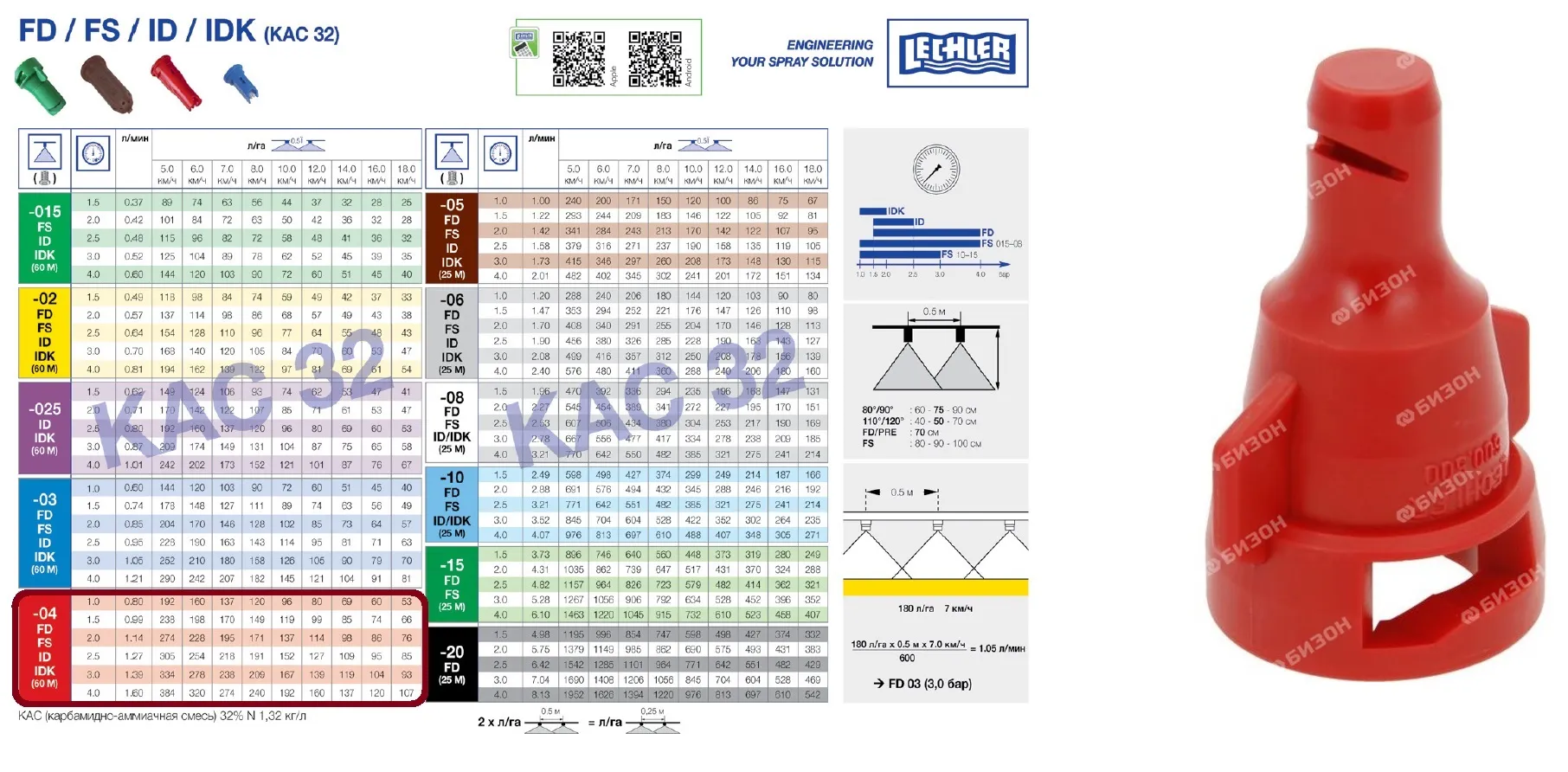 Распылитель жидких удобрений/КАС FD-04 дефлекторный полимер (красный) (Lechler)