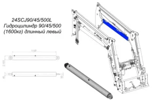 Гидроцилиндр 90/45/500 S39-l левый 24SCJ90/45/500 (Т229 1600 кг) (ремонтный) Metal-Fach