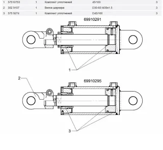 Гидроцилиндр рулевой 63.5/31.75x300 (Император 3100 Стара) правый ремонтный