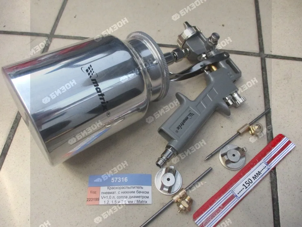 Краскораспылитель пневмат. с нижним бачком V=1,0 л, сопла диаметром 1.2, 1.5 и 1.8 мм / Matrix