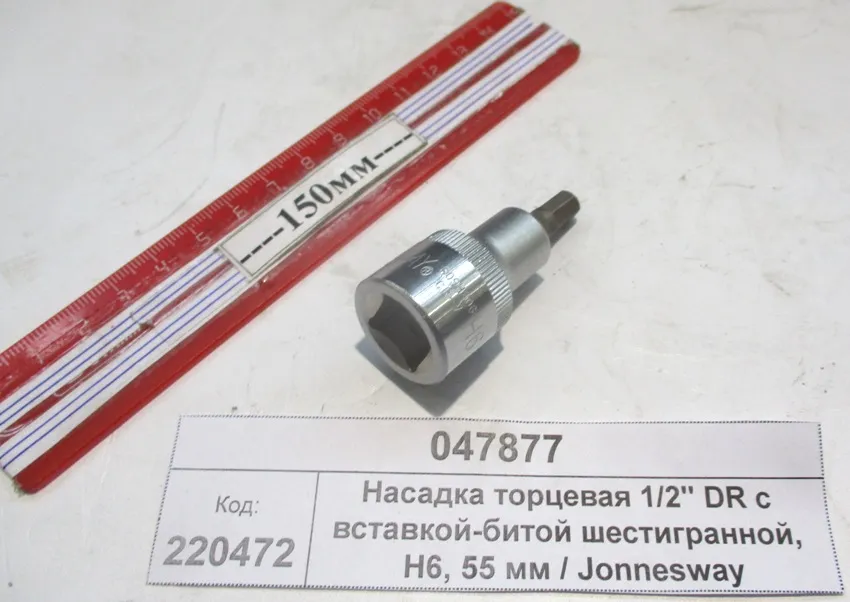 Насадка торцевая 1/2'' DR с вставкой-битой шестигранной, H6, 55 мм / Jonnesway