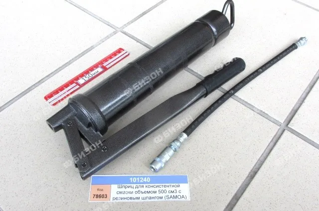 Шприц для консистентной смазки рычажный (V= 500 см3)(SAMOA) с резиновым шлангом.