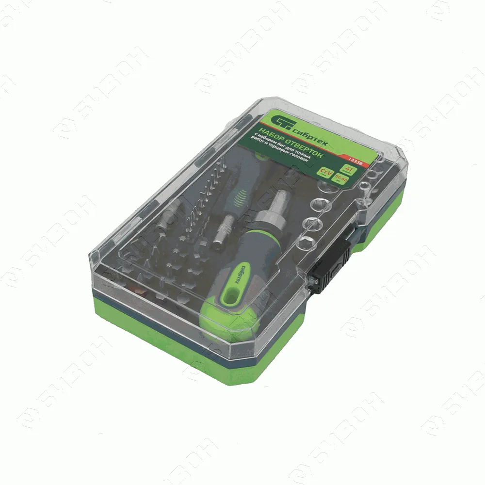 Отвертки реверсивные с набором бит и торцевыми головками, 41 шт, CrV / Сибртех