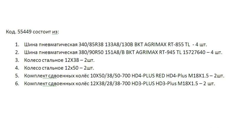 Компл. узких колёс (внут): Шины 270/95R38-2шт, 270/95R54-2шт, диски:10х38 /10х54 колея 1500/1800