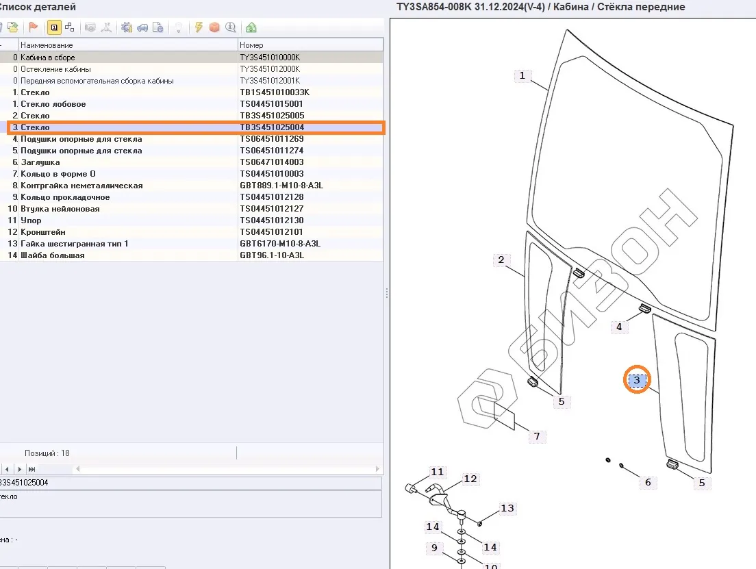 | LOVOL | TY3SA854-008K | 2022-02-28 | Кабина 10 | Стекло |