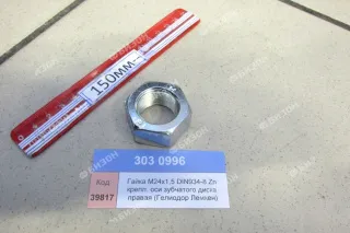 Гайка М24х1,5 DIN934-8 Zn крепления оси зубчатого диска правая (Гелиодор Лемкен)