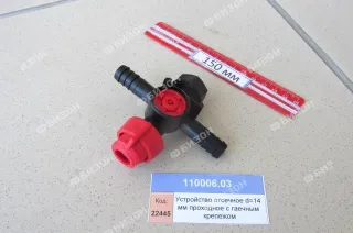 Устройство отсечное (d=14 мм) левое с гаечным крепежом под шланг (110006.10)
