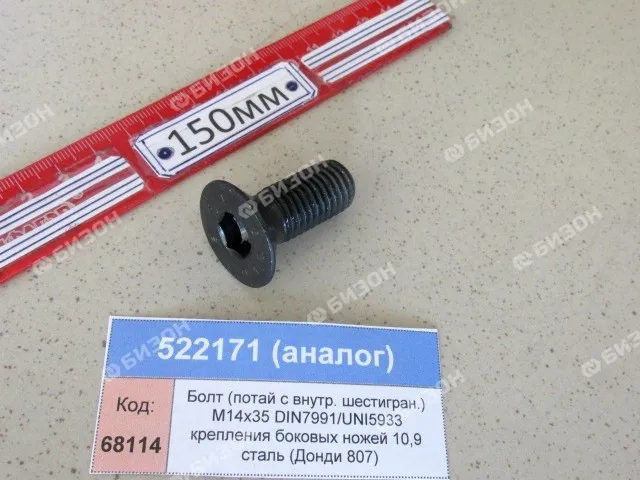 Болт (потай с внутр. шестигран.) М14х35 DIN7991/UNI5933 крепления боковых ножей (Донди 807)