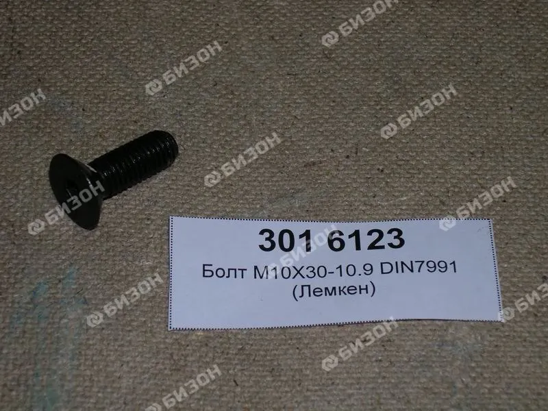 Болт (потай с внутр. шестигран.) М10х30-10.9 DIN7991-A крепл. сферического диска (Смарагд, Лемкен)