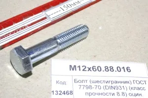 Болт (шестигранник) ГОСТ 7798-70 (DIN931) (класс прочности 8.8) оцин.