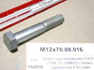 Болт (шестигранник) ГОСТ 7798-70 (DIN931) (класс прочности 8.8) оцин.