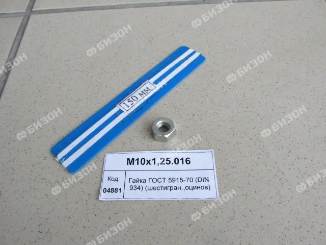 Гайка (шестигран.) М10х1,25 ГОСТ 5915-70 (DIN 934) (класс прочности 5) оцин.