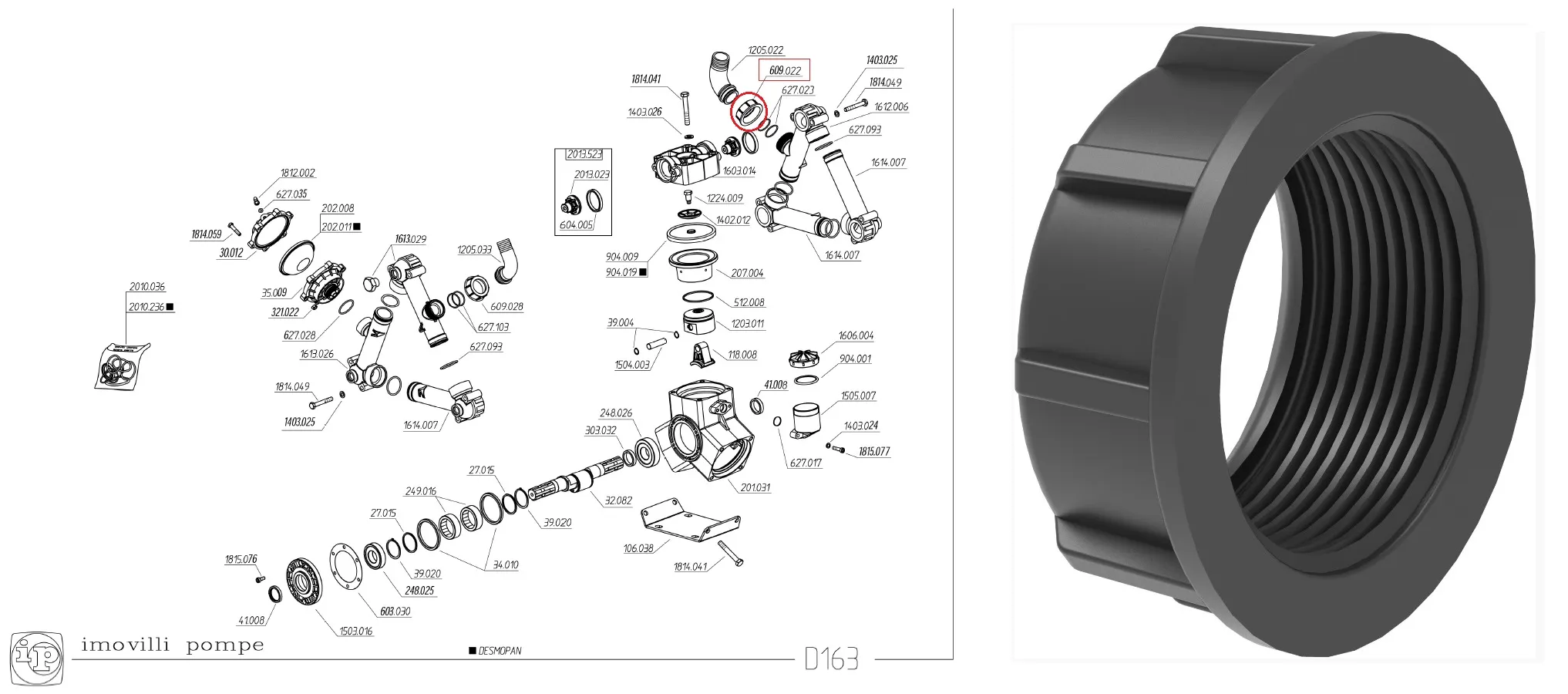Гайка накидная G2" (пластм.) входного патрубка насоса D-163, D-203, D-274