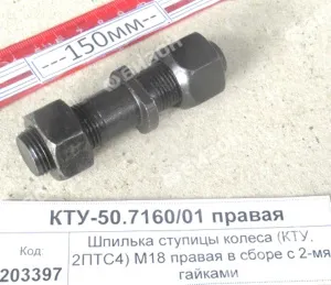 Шпилька ступицы колеса (КТУ, 2ПТС4) М18 правая в сборе с 2-мя гайками
