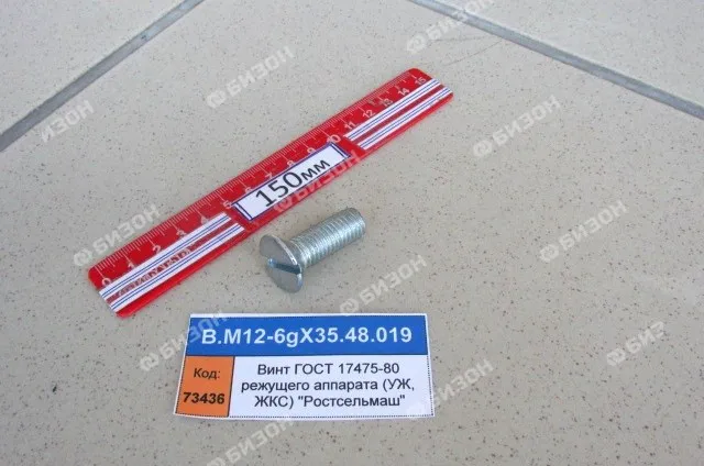Винт М12х35 (потай, прямой шлиц) ГОСТ 17475-80 режущ. аппарата (УЖ, ЖКС) "Ростсельмаш"