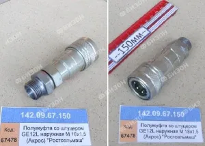 Полумуфта БРС наружн. гидравл. (М18*1,5)(в сб. со штуцером) "Ростсельмаш"