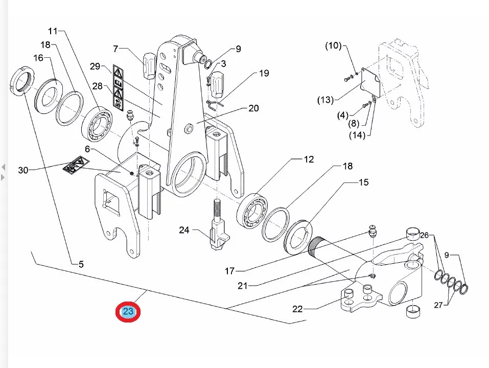 Ось шарнира нижняя моста (шкворень) в сборе с уплотнениями (2120670012) SMOI-42421007 (DIECI )
