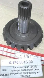 Вал-шестерня (Z=21) привода подающей цепи редуктора привода русел "Клевер"