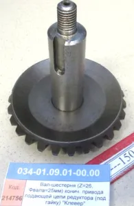 Вал-шестерня (Z=26, Фвала=25мм) конич. привода подающей цепи редуктора (под гайку)