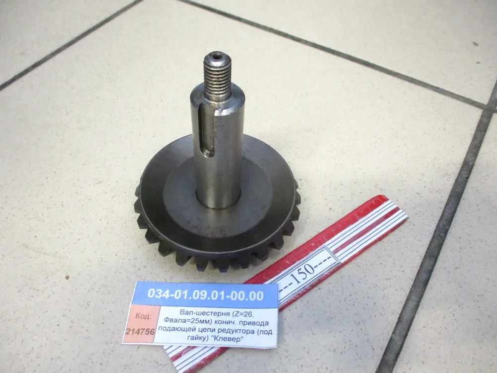 Вал-шестерня (Z=26, Фвала=25мм) конич. привода подающей цепи редуктора (под гайку)