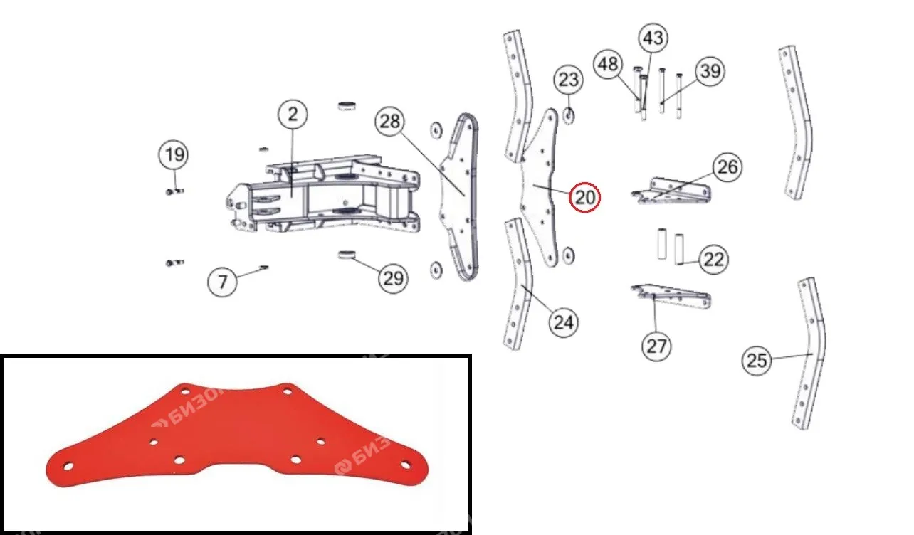 Пластина (коромысло) устр-ва натяж. цепи элеватора зернового (КЗС-8.10.12) "Гомсельмаш"