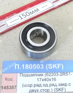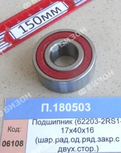 Подшипник (62203-2RS1- 17х40х16 (шар.рад.од.ряд.закр.с двух.стор.) (SKF)