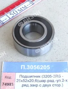 Подшипник (3205-2RS - 25х52х20,6(шар.рад.-уп.2-х.ряд.закр.с двух стор.)