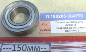 Подшипник (6205-2RS - 25х52х15 (шар.рад.од.ряд.закр.с двух.стор.) пластик/метал. сепаратор
