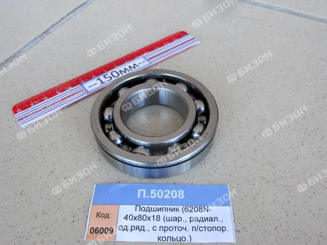 Подшипник (6208N- 40х80х18 (шар., радиал., од.ряд., с проточ. п/стопор. кольцо.)