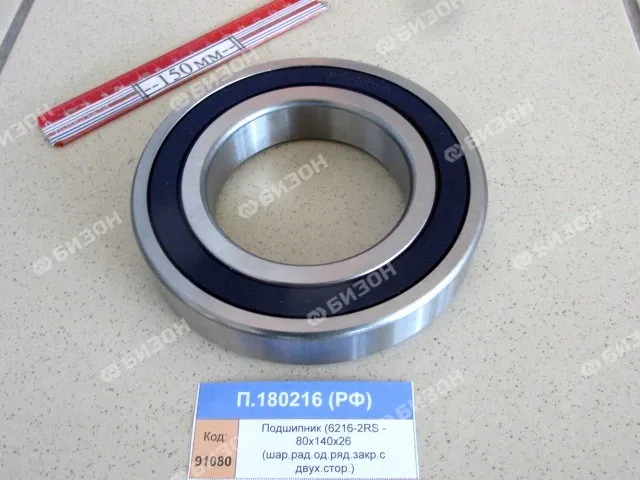 Подшипник (6216-2RS - 80х140х26 (шар.рад.од.ряд.закр.с двух.стор.): 180216