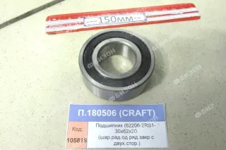 Подшипник (62206-2RS1- 30х62х20 (шаровый радиальный однорядный закрытый с двух сторон)