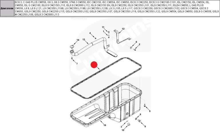 | Cummins | 6ISLe-400-40 (Repto) | 2013 | Поддон картера | Gasket, Oil Pan |
