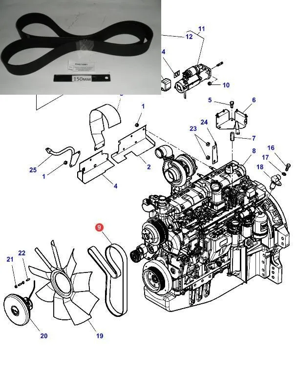 Ремень поликлин. (8PK-1625) привода вентилятора двигателя (MF8780 с дв.Cummins, Стара)
