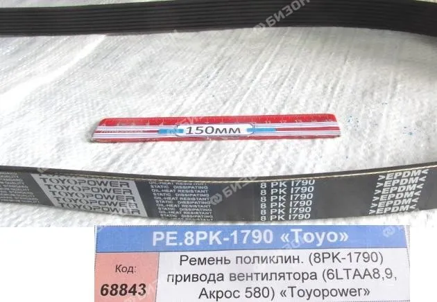 Ремень поликлин. (8PK-1790) привода вентилятора (6LTAA8,9, Акрос 580) «Toyopower»