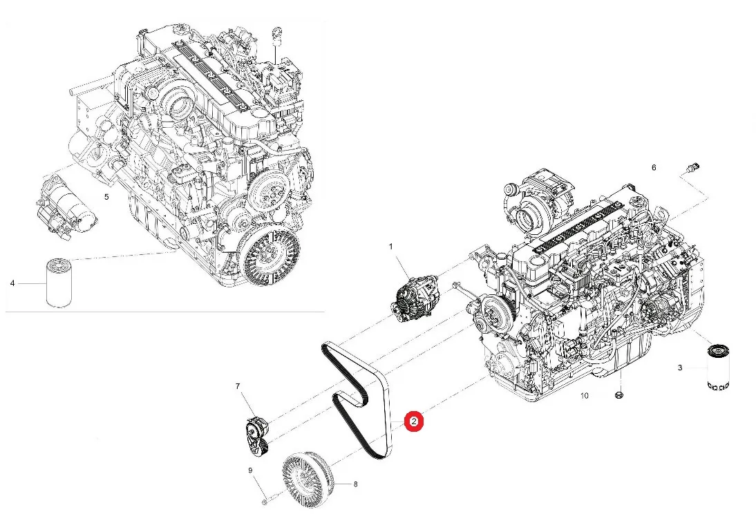 Ремень поликлин. (8PK-1795/8РК-1790) (3289325) привода вентилятора (6LTAA8,9, Акрос 580, 590)