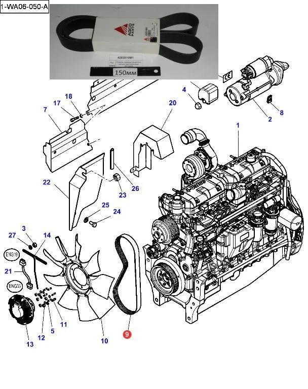 Ремень поликлин. (4PK-1501) привода вод. насоса и компр. конд. (MT700D,RoGator 1300B)