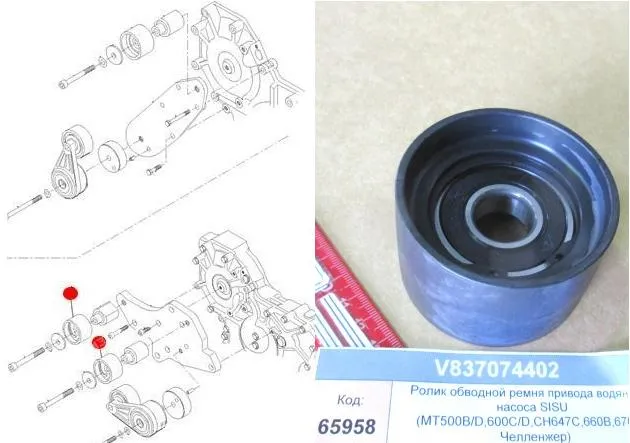 Ролик обводной ремня привода водяного насоса SISU (MT500B/D,600C/D,CH647C,660B,670B Челленжер, T194)