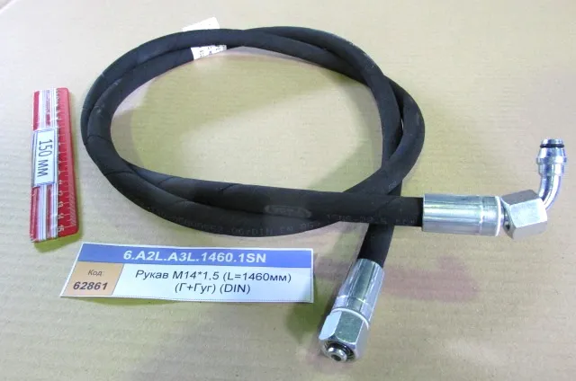 Рукав РВД М14х1,5 (06- 2SN-DKO(г) М14х1,5 8 /DKO(г) М14*1,5 8 (90°) - 1460 (Г+Гуг) (DIN)) GATES