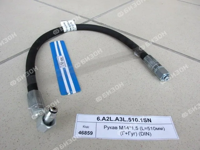 Рукав РВД М14х1,5 (06- 2SN-DKO(г) М14х1,5 8 /DKO(г) М14*1,5 8 (90°) - 510 (Г+Гуг) (DIN)) GATES