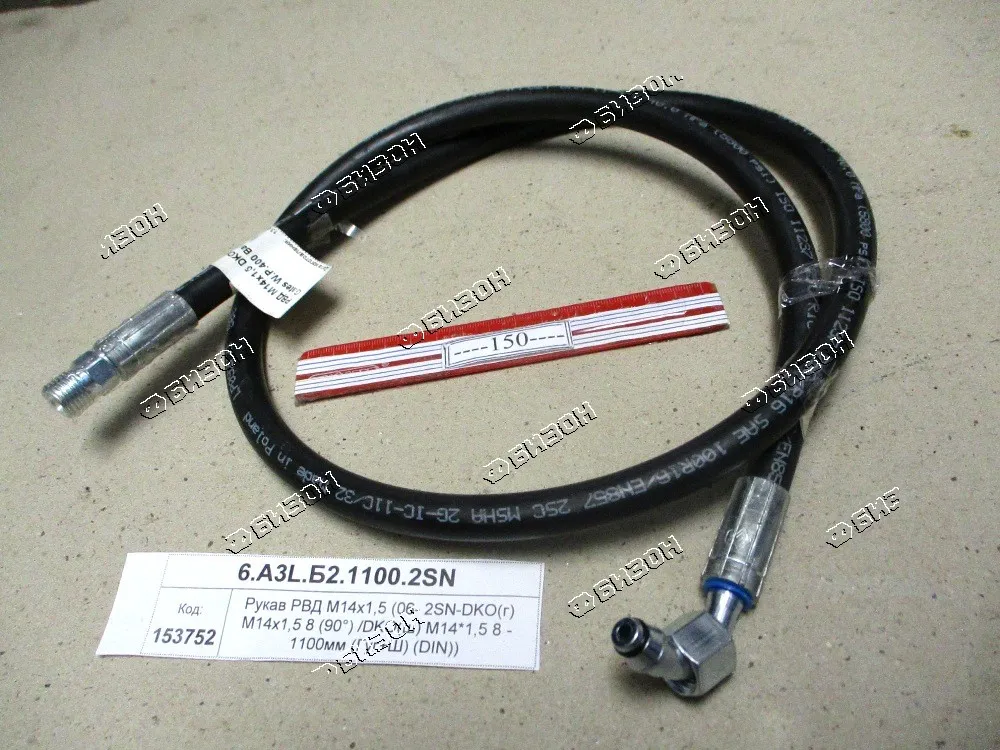 Рукав РВД М14х1,5 (06- 2SN-DKO(г) М14х1,5 8 (90°) /DKO(ш) М14*1,5 8 - 1100мм (Гуг+Ш) (DIN)) GATES