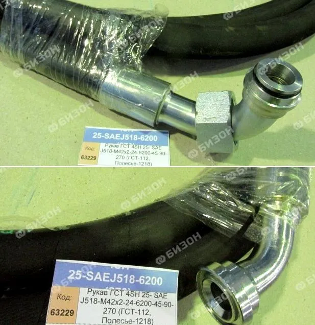 Рукав ГСТ 4SH 25-SAEJ518-М42х2-24-6200-45-90-270 (ГСТ-112, КЗС-1218)