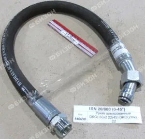Рукав РВД М30х2 (20- 2SN-DKO(ш) М30х2 22 /DKO(г) М30х2 22(45°) -800 (Ш+Гуг45°)) GATES